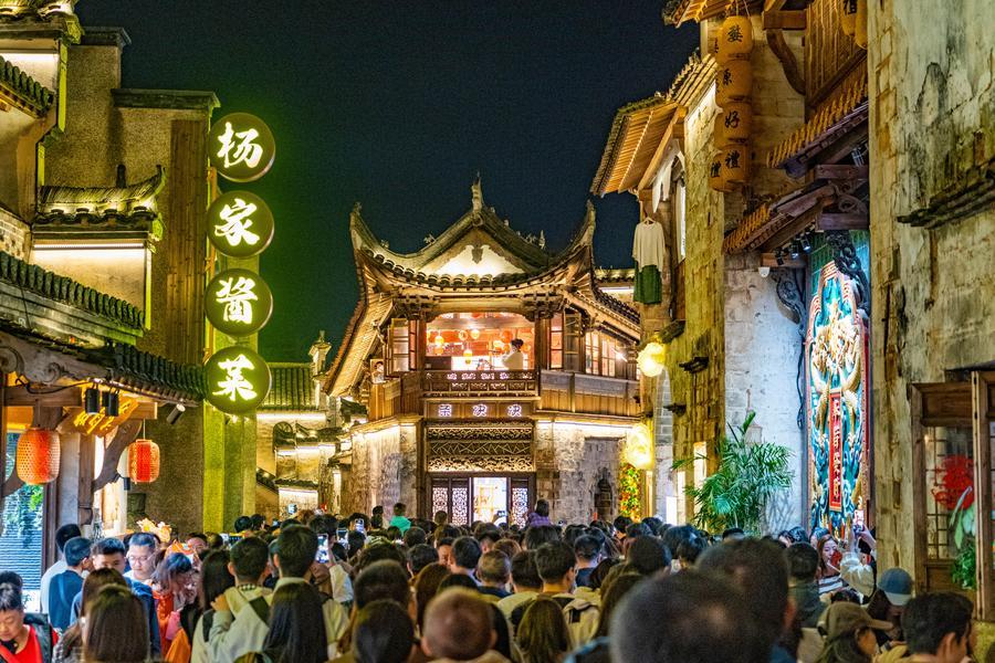弦高古城内にある西湖凼(せいことう)文化観光街区は、25年5月の試験営業開始以来、観光客数が400万人を突破した。(記者/袁慧晶)