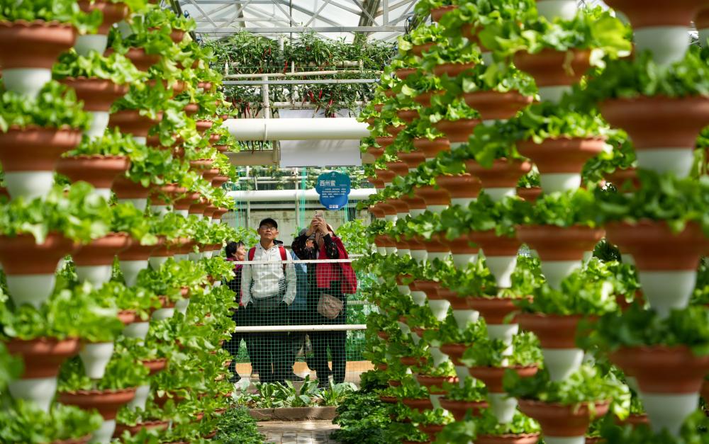 20日、中国(寿光)国際野菜科学技術博覧会で展示された新型栽培モデル。(濰坊=新華社記者/徐速絵)