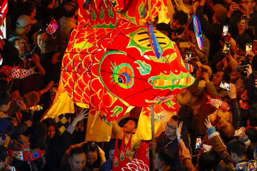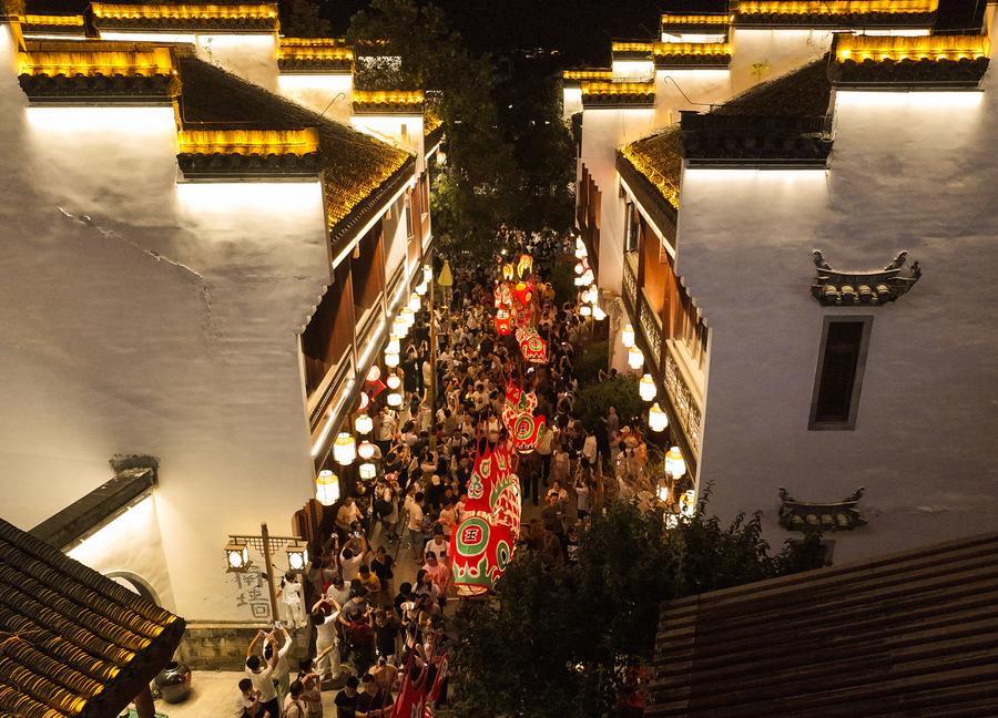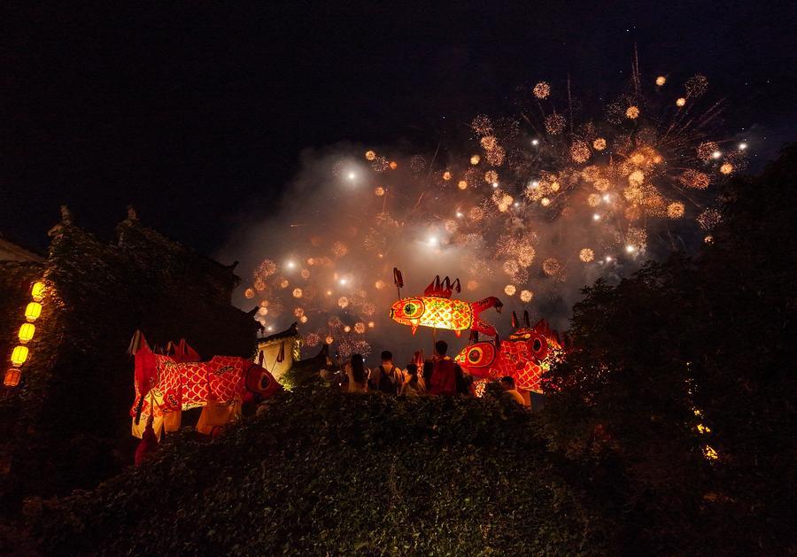【新華社合肥4月25日】中国安徽省黄山市黟(い)県の秀里古村では夜になると、魚の形をしたランタン「魚灯」のパレードがにぎやかに行われ、色とりどりの明かりが伝統行事と村の夜景を引き立てる。訪れた観光客は時間をさかのぼったような感覚に包まれながら、奥深い地域文化を体験する。