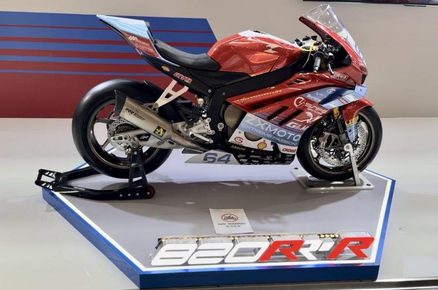 16日、第139回広州交易会のバイク展示エリアで「張雪機車」が展示した「820RR」モデル。 (広州=新華社記者/関錦恒)
