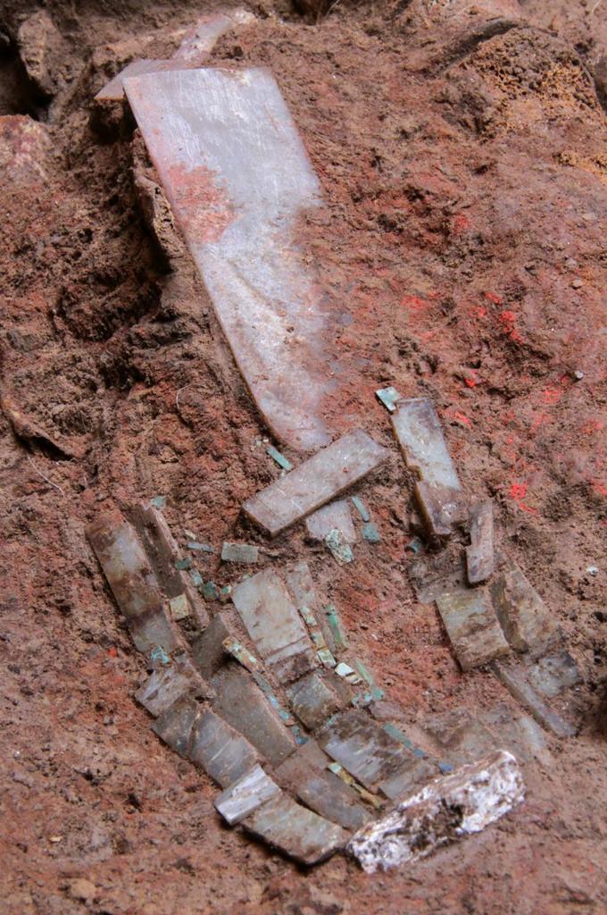 越国都城と漢・六朝会稽郡遺跡(浙江省紹興市)の塔山和暢坊地点で見つかった東周期越国の祭祀(さいし)溝発掘現場。(北京=新華社配信)