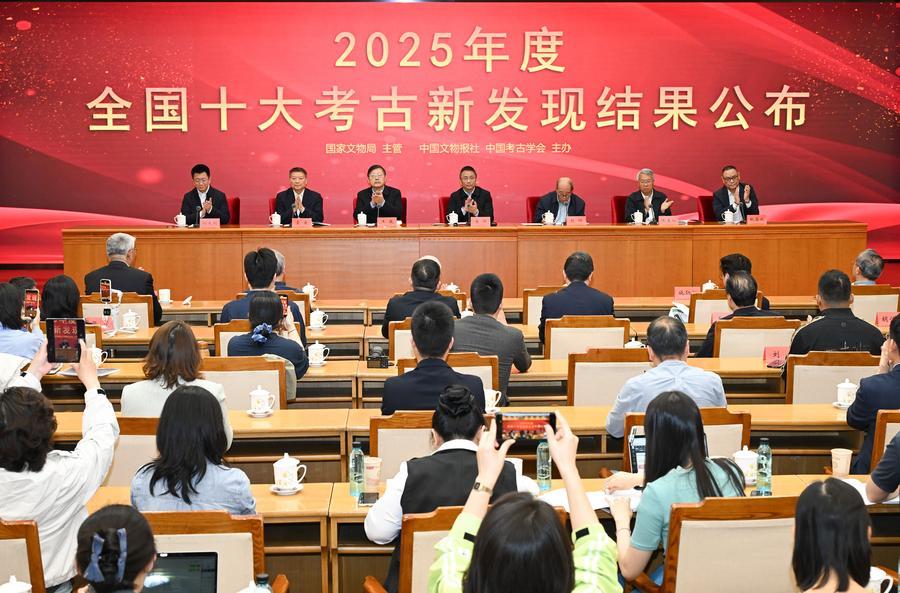 29日、北京で開かれた2025年度全国十大考古新発見の選考結果発表会。(北京=新華社記者/李賀)
