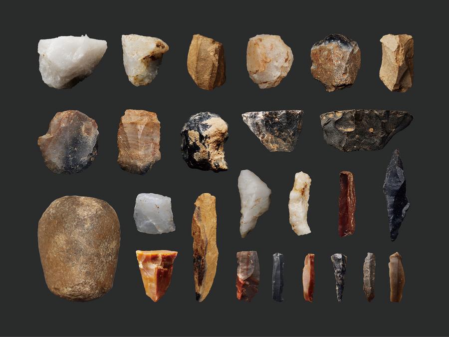 裴李崗遺跡(河南省新鄭市)出土の後期旧石器時代後期の典型的な石器。(北京=新華社配信)