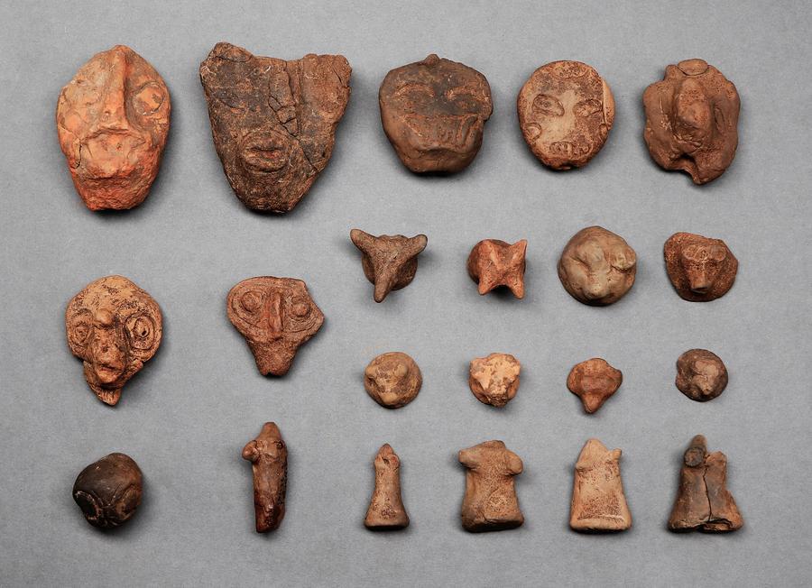 裴李崗遺跡(河南省新鄭市)出土の陶塑(とうそ)。(北京=新華社配信)