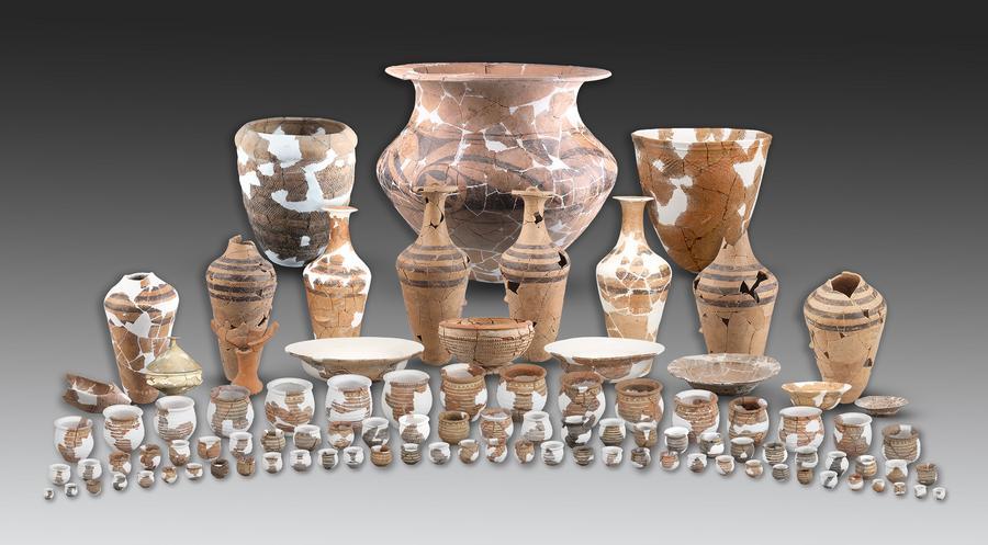 南佐遺跡(甘粛省慶陽市)「F2」住居跡出土の土器。(北京=新華社配信)