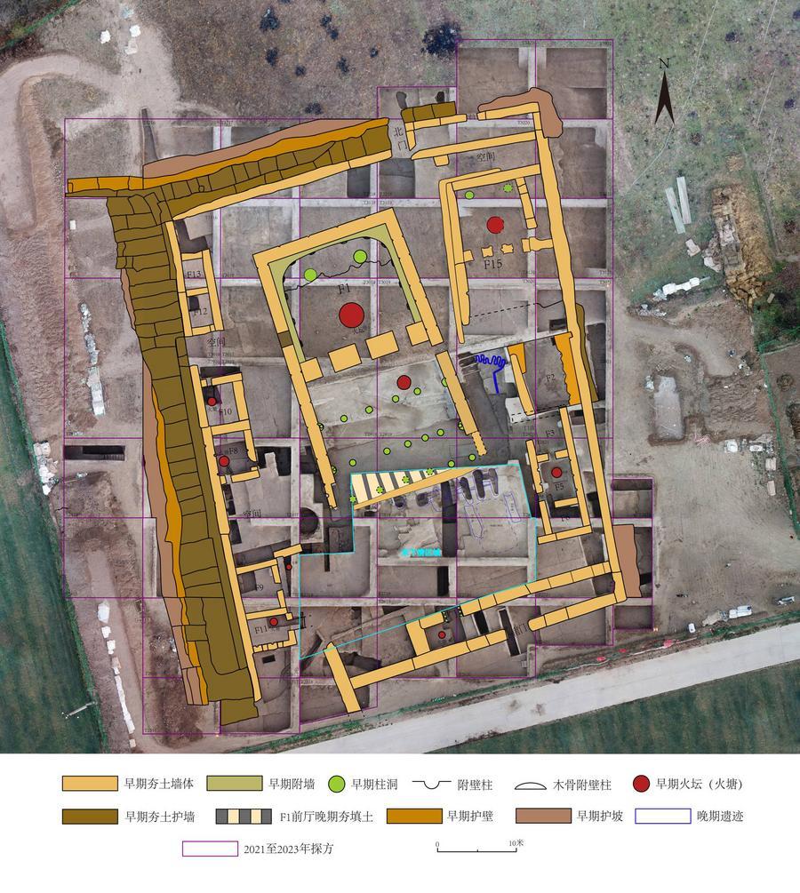 南佐遺跡(甘粛省慶陽市)で出土した高等級院落(中庭)の概略図。(北京=新華社配信)