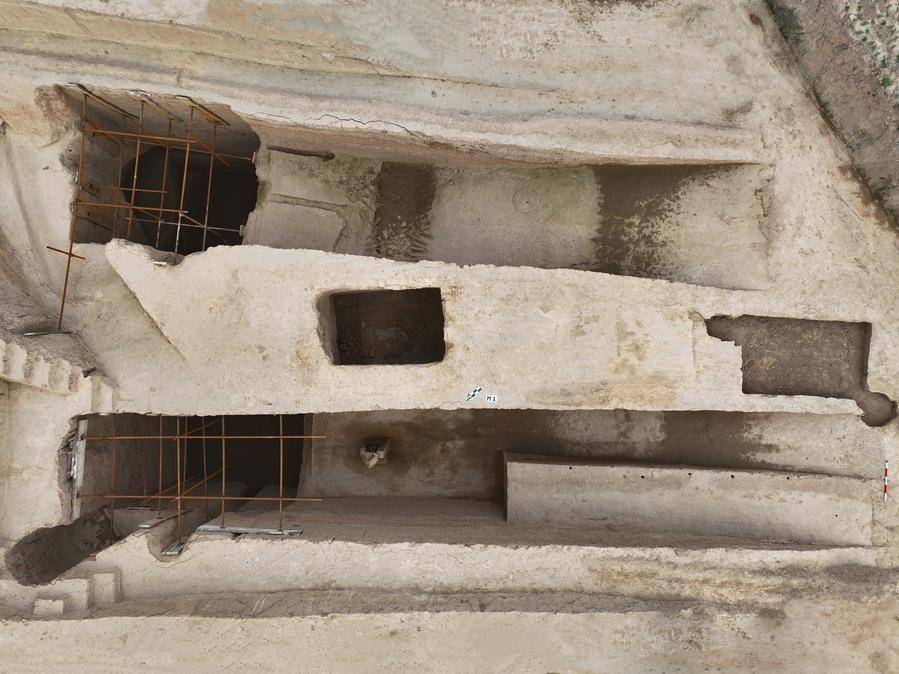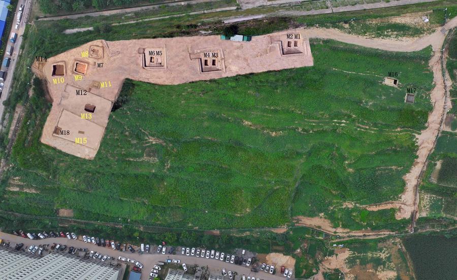長春遺跡(陝西省富平県)の「M1」「M2」墓発掘エリア。(北京=新華社配信)