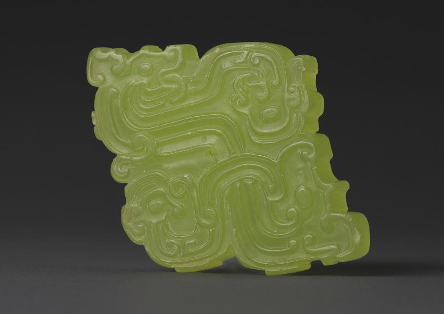 長春遺跡(陝西省富平県)出土の玉人竜合文佩。(北京=新華社配信)