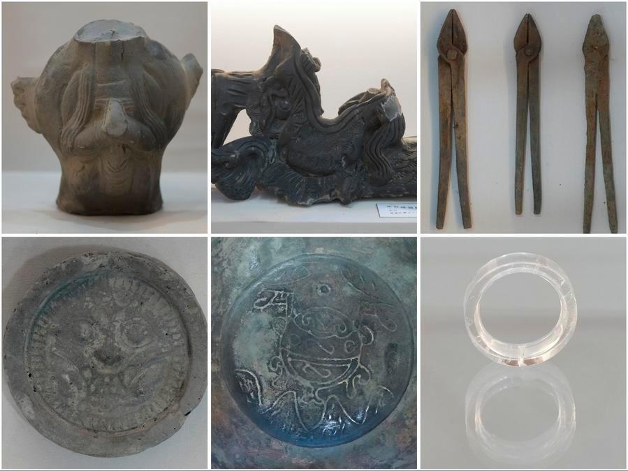 琅琊台遺跡(山東省青島市)出土の建築部材。(北京=新華社配信)