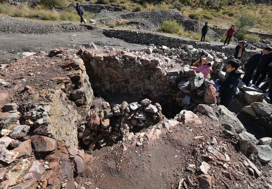 蘇峪口磁器窯跡(寧夏回族自治区賀蘭県)の2024年度発掘区域で窯跡を調査する調査隊メンバー。(2025年10月13日撮影、北京=新華社記者/李賀)