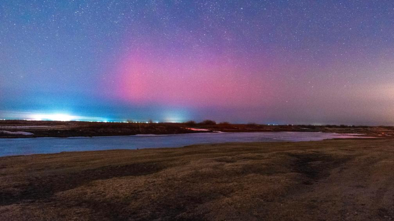 中国黒竜江省の空に鮮やかなオーロラ