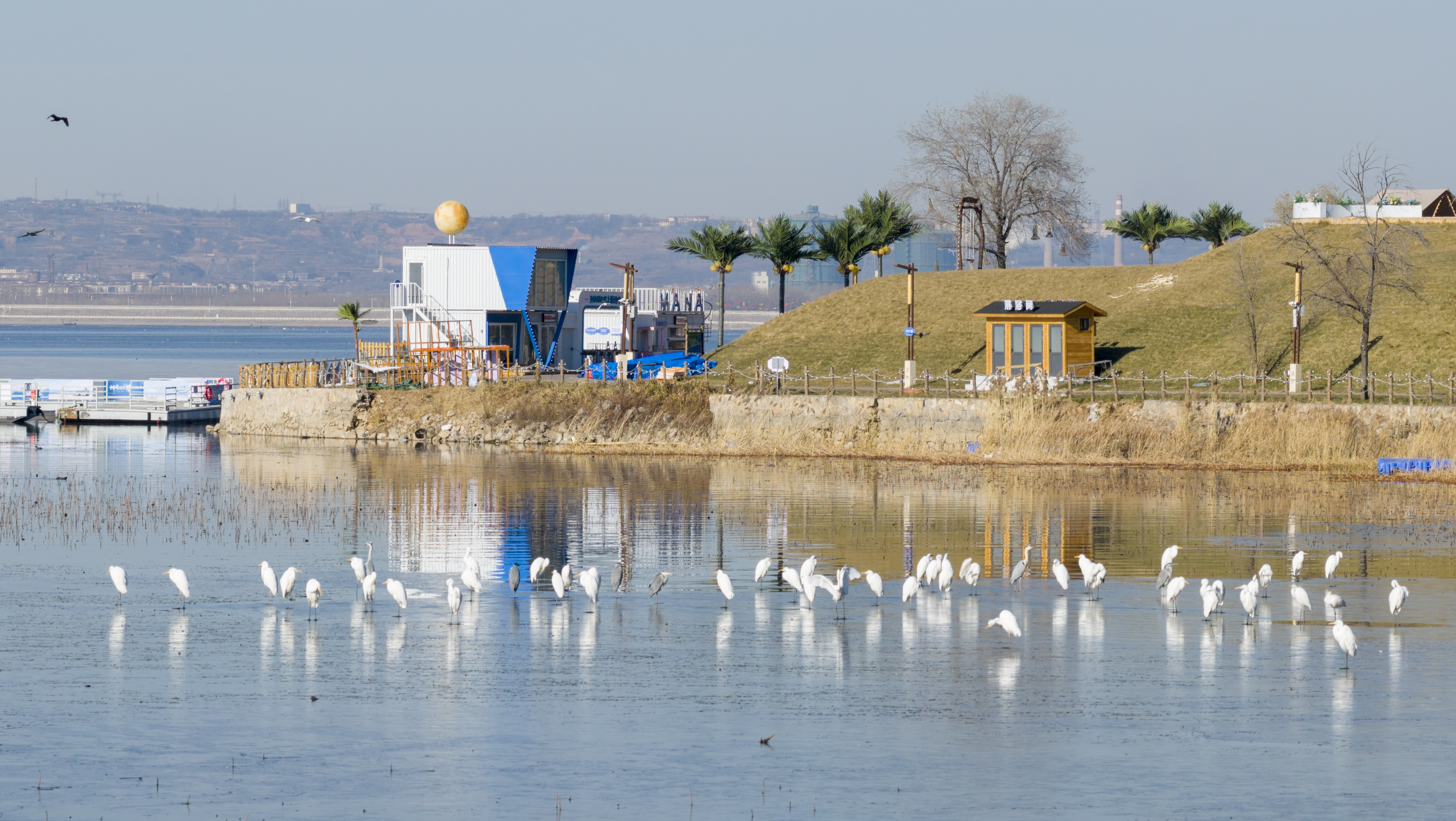 黄河湿地に1万羽以上のハクチョウ 中国河南省三門峡市