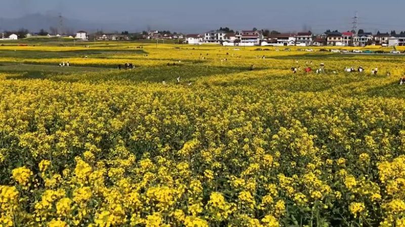 【映像】菜の花満開、一面に広がる黄金色の花畑 中国・陝西省漢中市