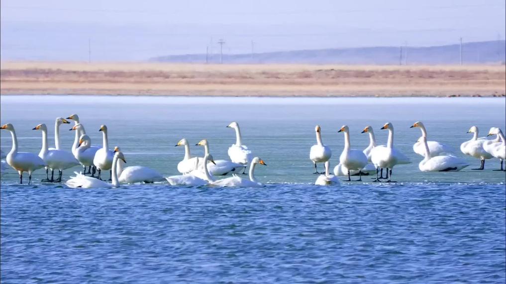 【映像】ウラド草原に北帰行のハクチョウが飛来 中国内モンゴル自治区