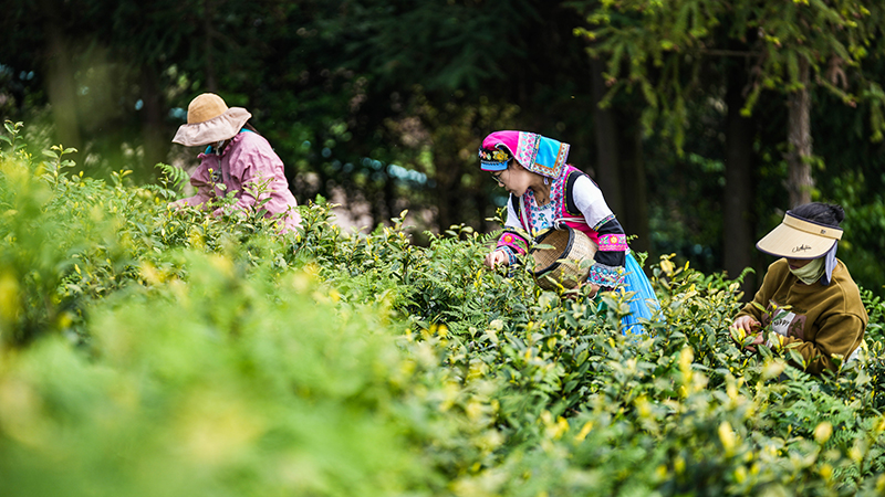 清明前の明前茶摘み最盛期 中国・六盤水市
