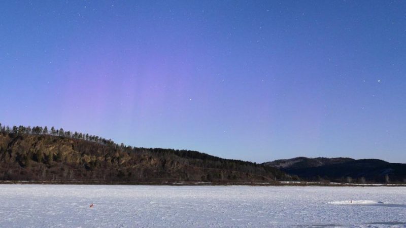 満月の夜空にオーロラ輝く 中国黒竜江省