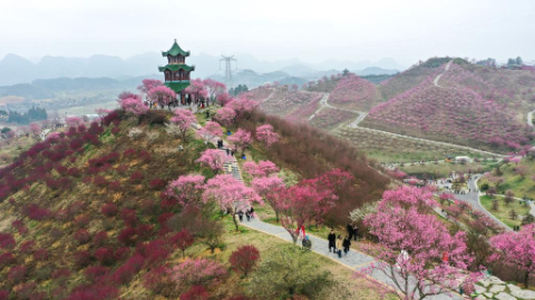 中国貴州省貴安新区の梅園が見頃 観光客でにぎわう