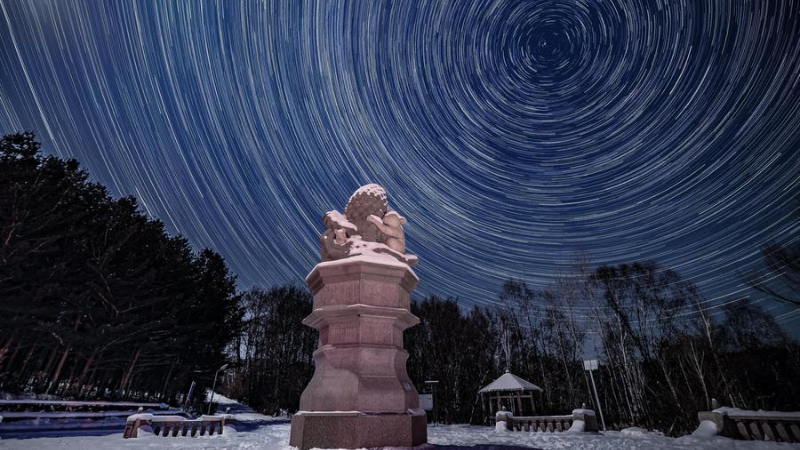 中国黒竜江省で冬の星空が見頃 氷雪と星が織りなす夜