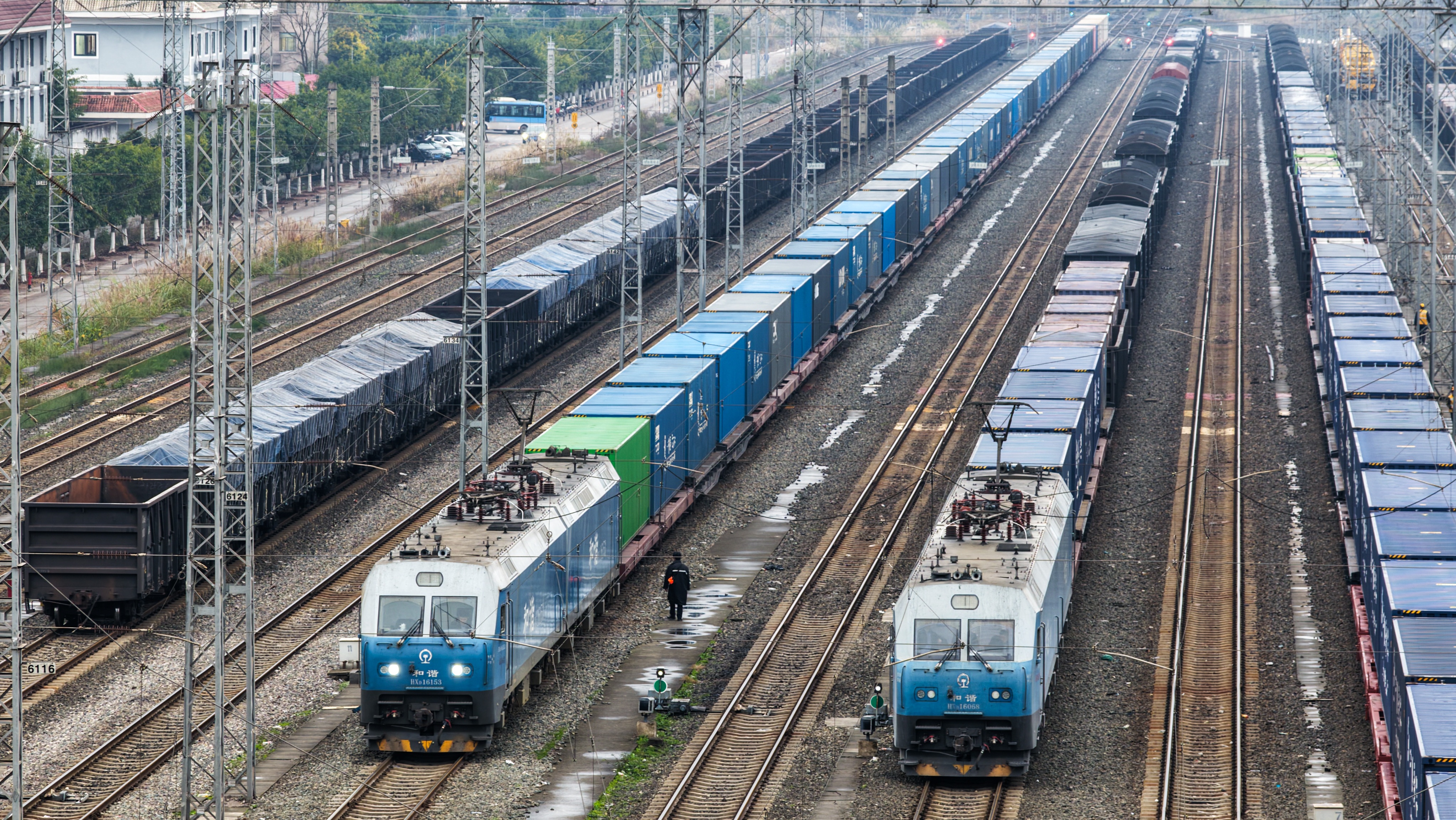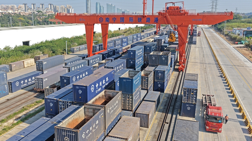 中国とシンガポールを結ぶ複合一貫輸送モデルプロジェクトの国際定期貨物列車「重慶-東南アジア班列」が15日、化学製品やオートバイ部品などを積み、重慶市の魚嘴駅を出発した。