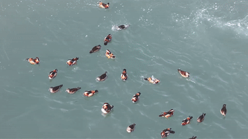 【映像】川面にオシドリの群れ、黄土高原に彩り 中国陝西省延安市