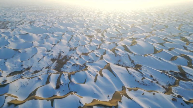 【映像】タクラマカン砂漠が銀世界に 中国新疆ウイグル自治区