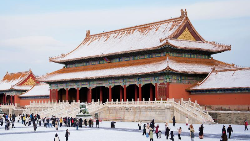雪晴れの故宮、観光客でにぎわう 北京市