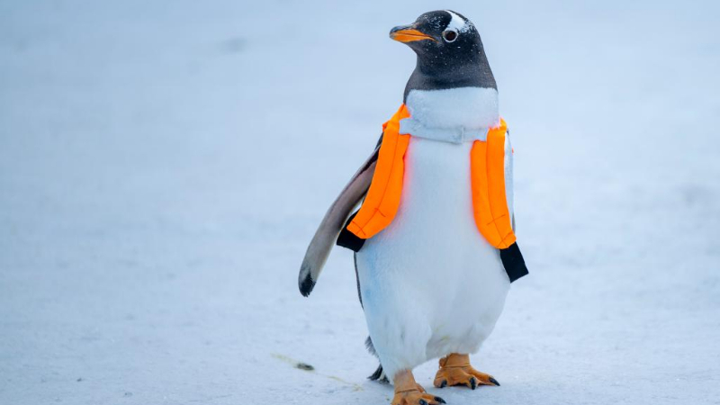 ペンギン100羽がパレード披露 中国・ハルビン市