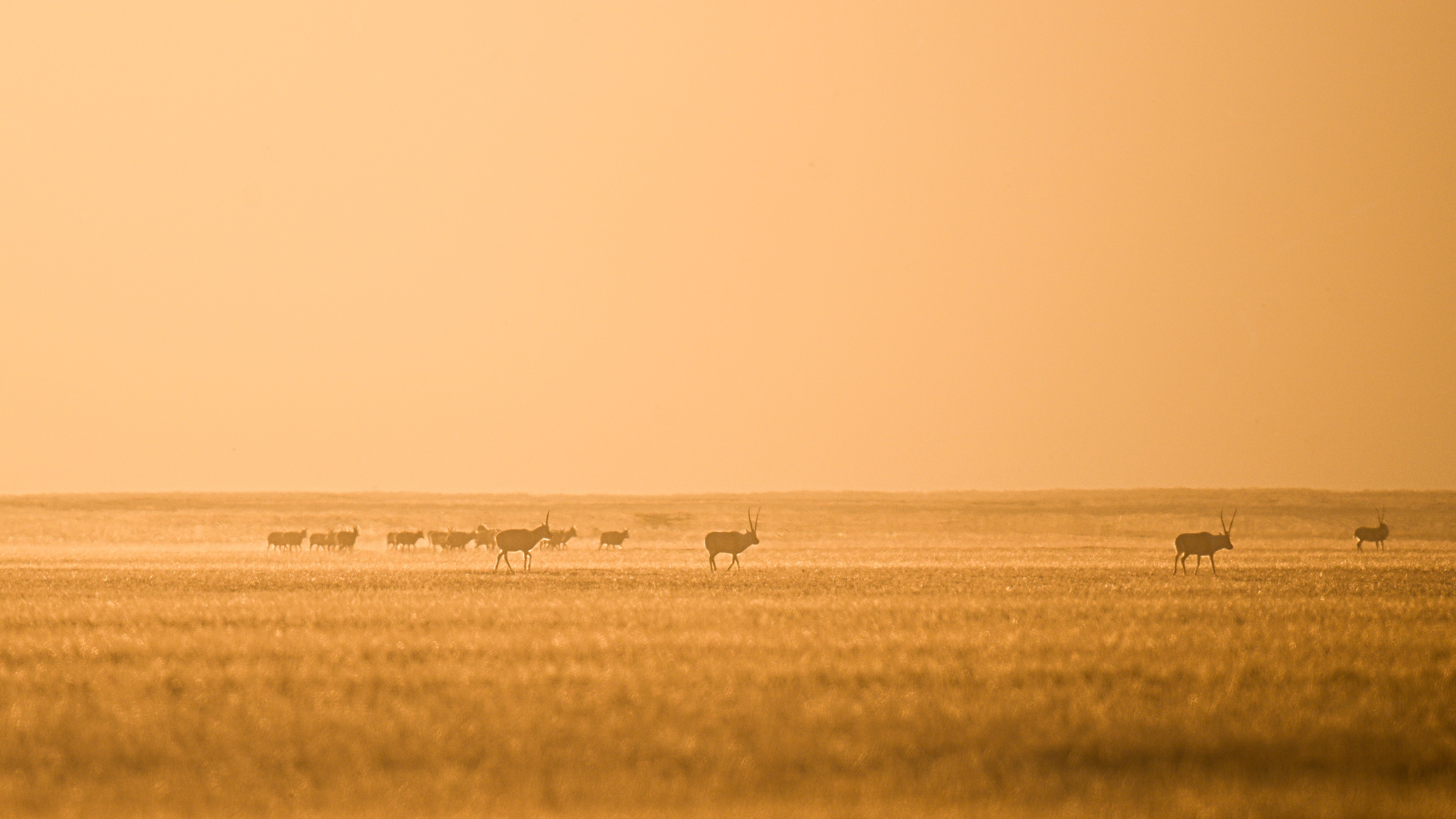 チルーが繁殖期に、雌を巡る雄たちの闘い 中国西蔵自治区