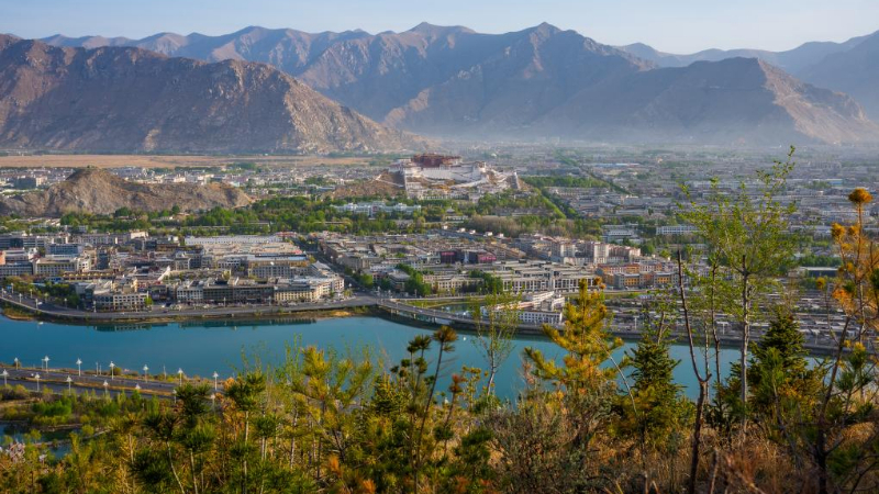 中国西蔵自治区ラサ市の南山公園、緑化進み市街地一望の人気スポットに