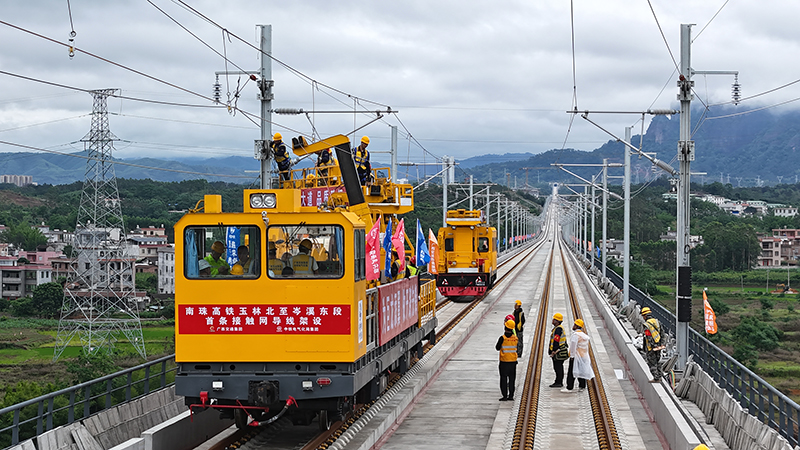中国の南珠高速鉄道、玉岑区間に供電用架線網を設置 2026-04-30