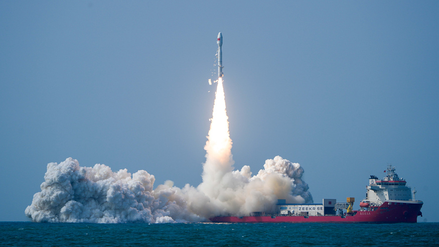 中国、広東省陽江沖から7衛星打ち上げ