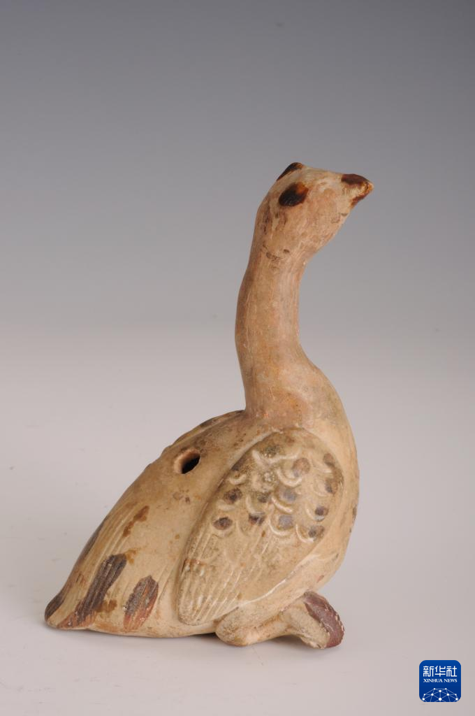 江西省吉安市の宋代吉州窯遺跡から出土した、ガチョウをかたどった土笛。ここで見つかる磁器像は多くが10センチ未満で、日常生活の中でよく見られる動物がモデルとなっている。700年の時を経た今もなお、美しい音色を奏でることができる。(南昌=新華社配信)pagebreak