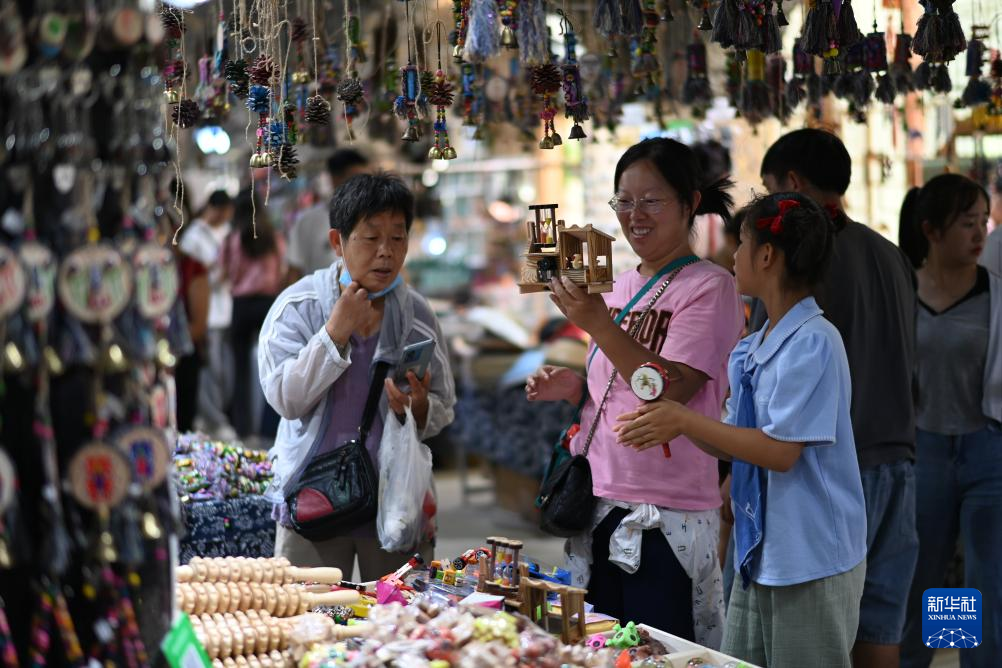 15日、貴陽市花渓区の夜郎谷で商品を選ぶ観光客。(貴陽=新華社記者/楊楹)pagebreak