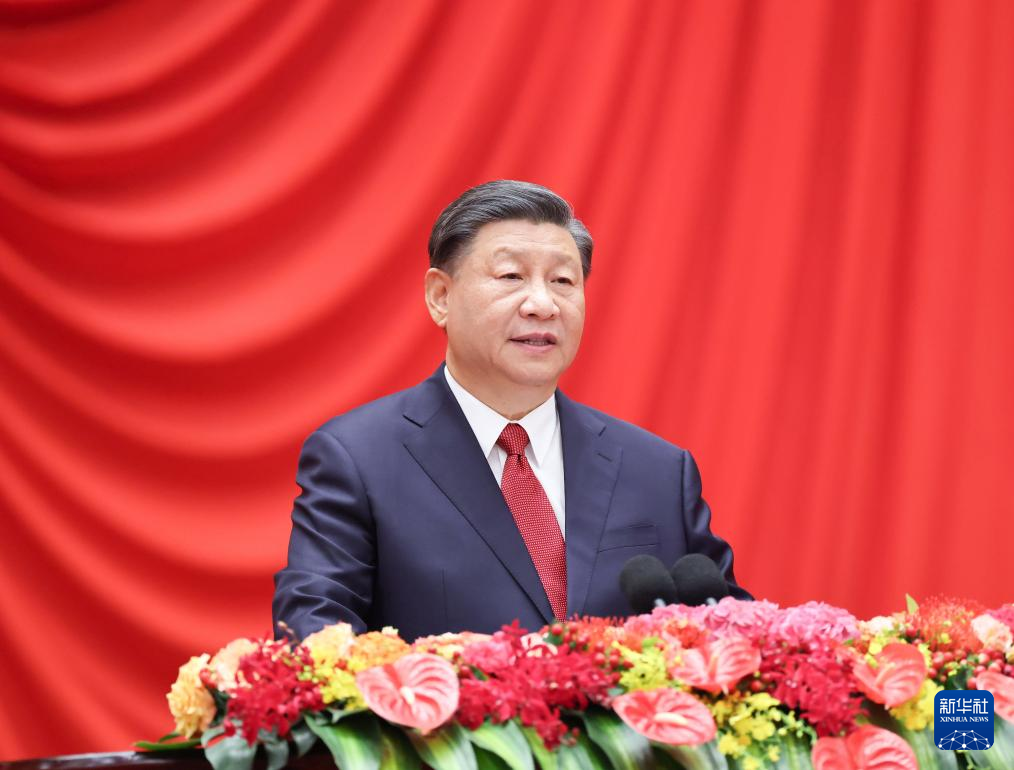 中華人民共和国成立74周年祝賀レセプションが28日夜、北京の人民大会堂で開かれた。習近平(しゅう・きんぺい)中国共産党中央委員会総書記・国家主席・中央軍事委員会主席が出席し、重要演説を行った。(北京=新華社記者/劉彬)