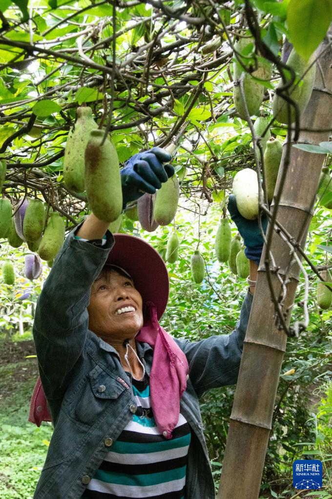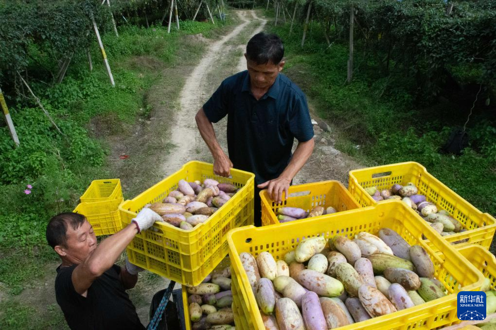 【新華社永州10月1日】中国湖南省永州市藍山県でアケビやキウイなどが実り、農家の人々が収穫作業にいそしんでいる。同県はここ数年、地域の実情に合わせて7万ムー(約4667ヘクタール)の以上の農地で果樹栽培を行い、生産者の収入増につなげている。
