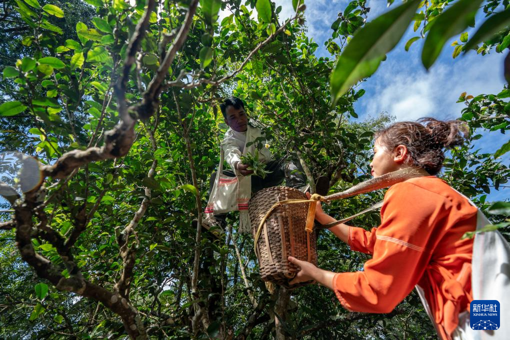 【新華社普洱10月1日】中国雲南省普洱(ふじ)市瀾滄(らんそう)ラフ族自治県の景邁山では、古茶樹林の秋摘み茶の収穫が最盛期を迎え、地元の茶農家が作業に追われている。普洱(プーアル)茶の原産地として知られる景邁山の古茶樹林の景観は、古茶樹林5カ所と点在する9カ所の古村落、3カ所の防護林からなり、9月に開かれた第45回世界遺産委員会で「普洱の景邁山古茶林の文化景観」として世界遺産への登録が決定した。