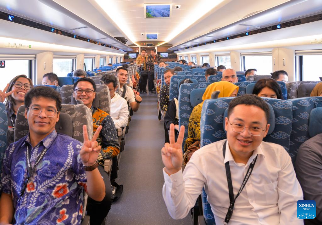 2日、ジャカルタ・バンドン高速鉄道の列車内。(ジャカルタ=新華社記者/徐欽)