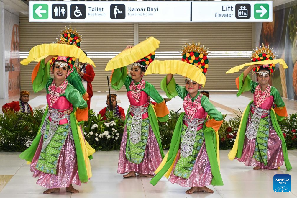 2日、ジャカルタのハリム駅で行われたパフォーマンス。(ジャカルタ=新華社配信)