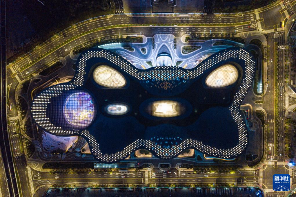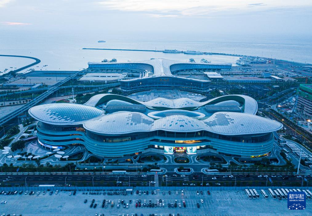 9月29日、中国免税品(集団)が運営する海口国際免税城。(小型無人機から、海口=新華社記者/蒲暁旭)