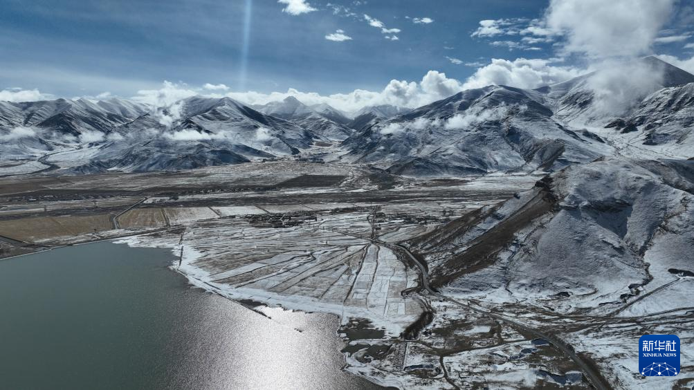 8日、ラサ市林周(ルンドゥプ)県に広がる雪景色。(小型無人機から、ラサ=新華社記者/晋美多吉)pagebreak