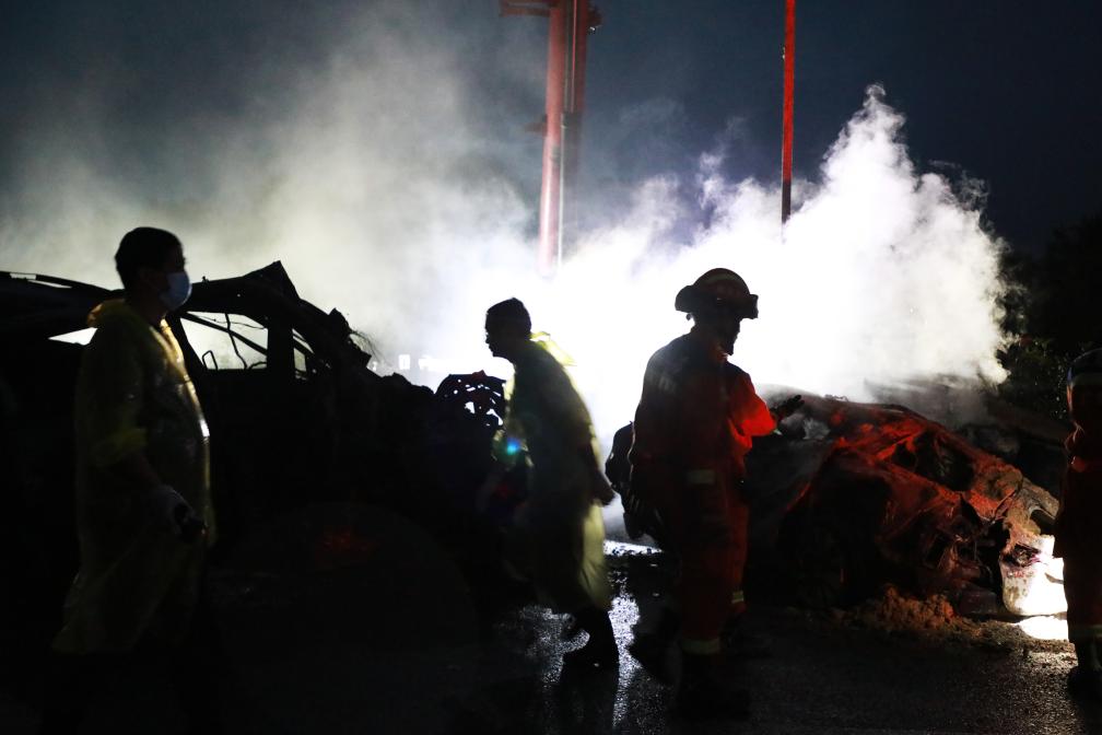 1日、救助活動が続く事故現場。(梅州=新華社記者/王瑞平)