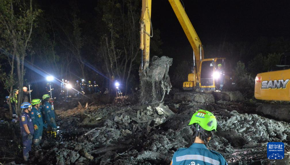 23日未明、小型飛行機の墜落現場で作業に当たる救援隊員。(チャチューンサオ県=新華社配信)