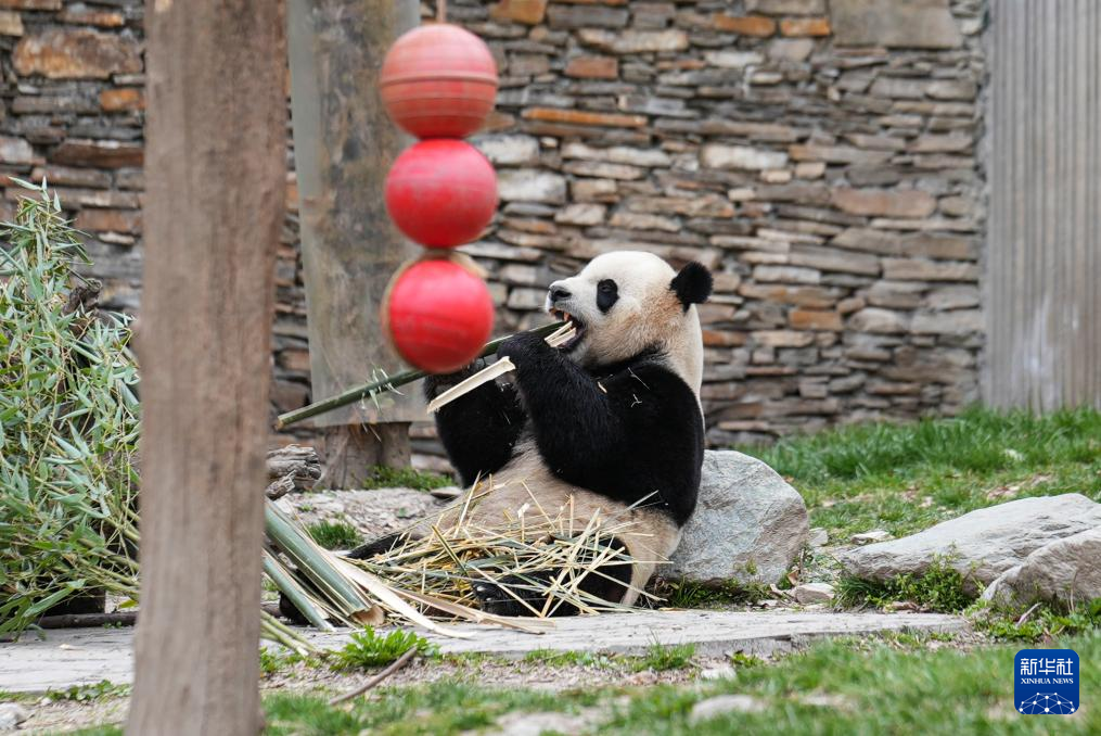 28日、竹を食べる「小奇跡(シャオチージー)」。(成都=新華社記者/辛夢晨)pagebreak