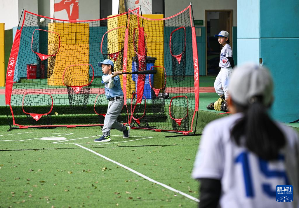 27日、重慶市江北区の巴川量子学校野球部で練習する受講生。(重慶=新華社記者/王全超)