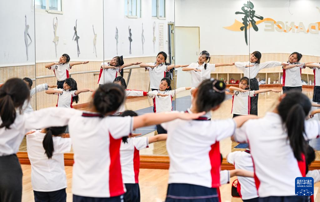 27日、重慶市江北区の新村同創国際小学校舞踊部で練習する児童ら。(重慶=新華社記者/王全超)