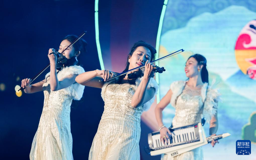 3日、第22回桃花観光文化フェスティバルの巴宜区サブ会場で歌を披露する歌手。(ニンティ=新華社記者/丁増尼達)