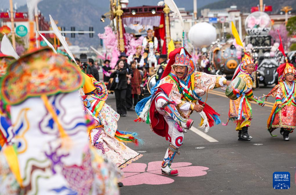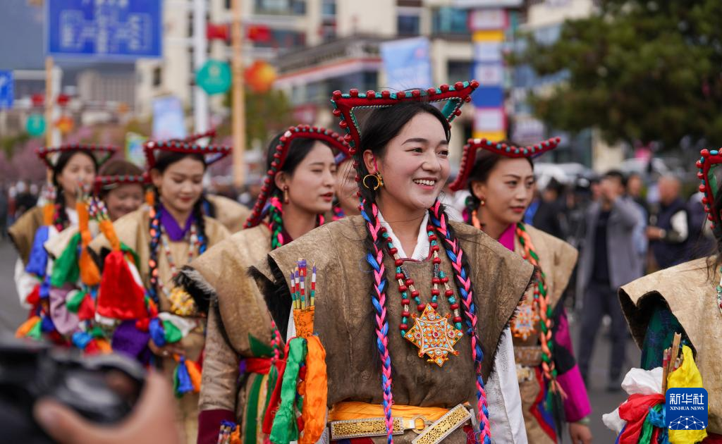 3日、第22回桃花観光文化フェスティバルで行われたパレード。(ニンティ=新華社記者/晋美多吉)pagebreak