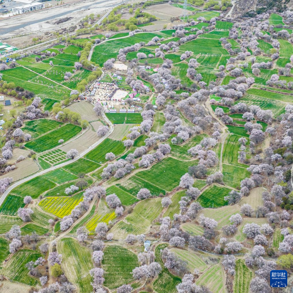 3日、第22回桃花観光文化フェスティバルの巴宜区サブ会場となった朶当(だとう)村。(ドローンから、ニンティ=新華社記者/丁増尼達)pagebreak