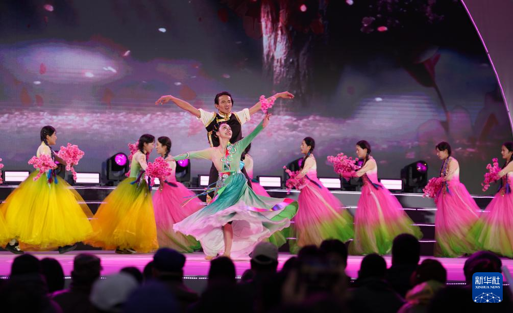 3日、第22回桃花観光文化フェスティバルの開幕式。(ニンティ=新華社記者/晋美多吉)