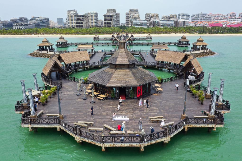 4日、文昌市逸竜湾にある海上図書館。(ドローンから、海口=新華社記者/郭程)pagebreak